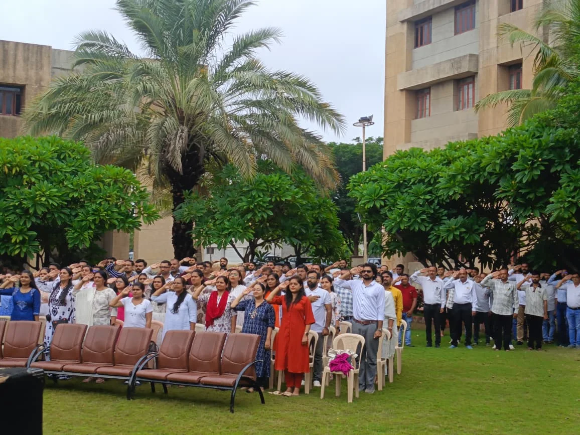 On 15th August 2025, B.H. Gardi College proudly celebrated the 79th Independence Day of India with great enthusiasm and patriotism. The celebration commenced at 9:30 AM with the flag hoisting ceremony by the Chief Guest, Dr. J. M. Badiyani, followed by the singing of the National Anthem, which filled the campus with a spirit of unity and pride.
